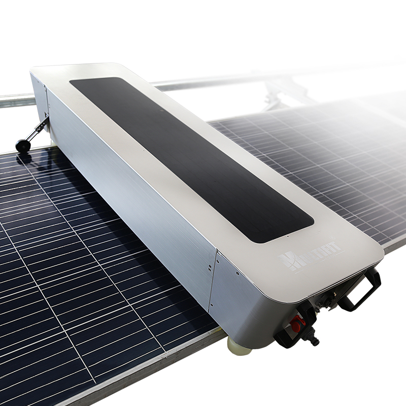 Product Features 1. Excellent performance: lithium battery, brushless motor, durable. 2. Automatic operation: automatic start and stop, automatic return, adaptive. 3. Light weight: no more than 40kg, easy to handle. 4. Long range: 800M. 5. Efficient cleaning: special brush, cleaner, single machine can clean 1.2MWp per day. 6. High cost performance: low cost, fast return. 7. Modular design: widely applicable to a variety of array layout, easy to install. 8. The system is equipped with water cleaning into two modes of anhydrous cleaning. 9. Own power supply system: self-charging, convenient and efficient, solar power charging, independent power supply, battery life of 6-8 hours.